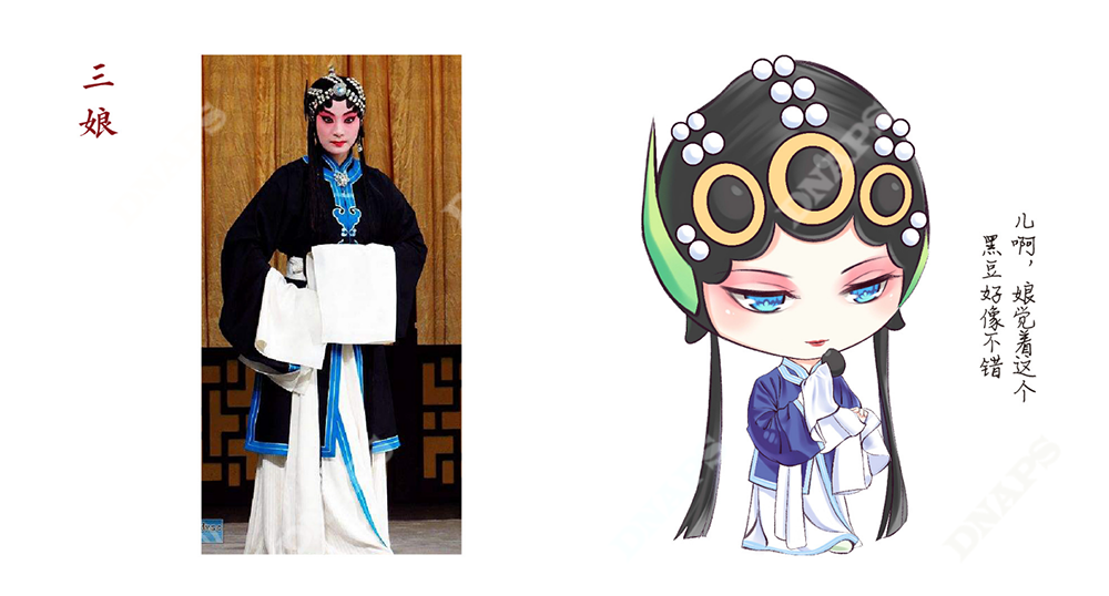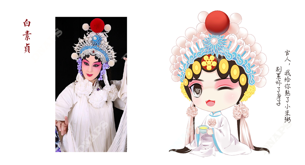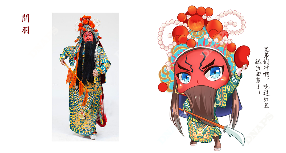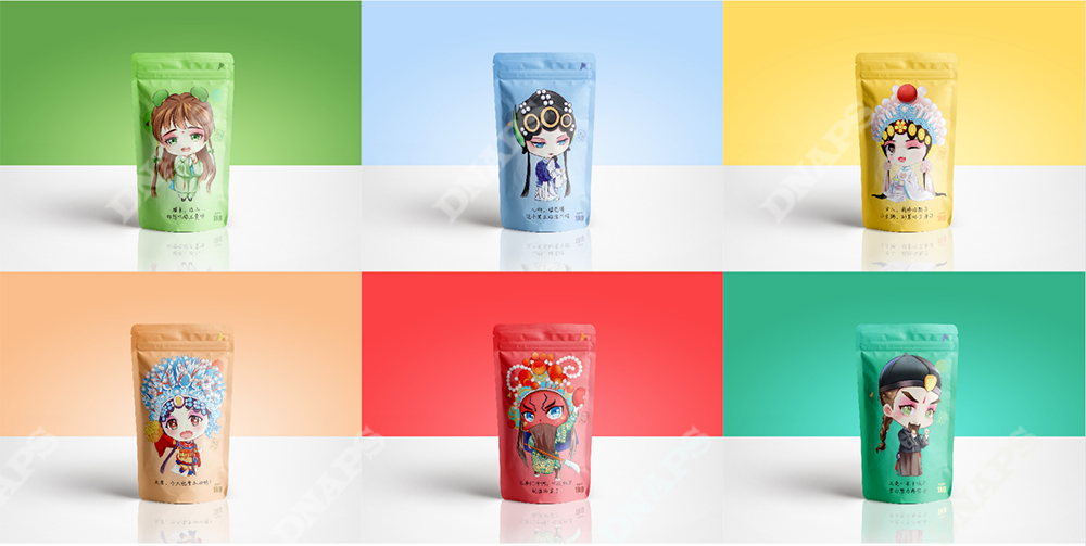 設(shè)計師結(jié)合山西晉劇,選取經(jīng)典晉劇人物形象作為產(chǎn)品代言人進(jìn)行設(shè)計。采用動漫的筆法進(jìn)行人物繪制,把五谷雜糧與人物相結(jié)合,使產(chǎn)品更加年輕化,煥發(fā)新的活力。